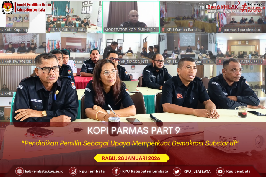 Halo, #TemanPemilih! KPU Kabupaten Lembata mengikuti kegiatan KoPi Parmas (Kita Ngobrol Pemilu, Demokrasi dan Partisipasi Masyarakat) Part 9 yang diselenggarakan KPU Provinsi Nusa Tenggara Timur (NTT) secara daring dari aula KPU Kabupaten Lembata pada Rabu, 28 Januari 2026. Kegiatan tersebut dihadiri oleh Ketua KPU Kabupaten Lembata, Hermanus Haron Tadon bersama dengan Anggota KPU Kabupaten Lembata Paulina Y. B. Tokan, Petrus Paulus Juang, Ibrahim Kader dan Idris Beda. Hadir pula Sekretaris KPU Kabupaten Lembata, Konradus Liwu, Kasubag Hukum SDM Joenady Wongso serta 4 orang staf Parmas SDM. KoPi Parmas Part 9 mengangkat tema “Pendidikan Pemilih Sebagai Upaya Memperkuat Demokrasi Substantif” dengan moderator Kasubag Hukum dan SDM KPU Kabupaten Manggarai, Oswaldus Romanus Soba. Adapun narasumber dalam kegiatan tersebut adalah Anggota KPU Kota Kupang selaku Ketua Divisi Perencanaan Data dan Informasi Florianus Hartono serta Anggota KPU Kabupaten Malaka selaku Ketua Divisi Sosdiklih Parmas SDM Ibrahim Laga. Kegiatan ini dibuka oleh Ketua KPU Provinsi NTT, Jemris Fointuna. Dalam sambutannya, Jemris berharap para narasumber dapat memberikan pemahaman yang komprehensif mengenai upaya mewujudkan demokrasi substantif melalui pendidikan pemilih. Materi pertama disampaikan oleh Florianus Hartono. Ia menjelaskan bahwa pendidikan pemilih merupakan proses pendidikan dan pelatihan yang bertujuan meningkatkan kesadaran, pengetahuan, dan keterampilan masyarakat dalam menggunakan hak pilihnya. Menurutnya, pendidikan pemilih tidak hanya menjadi tanggung jawab KPU, namun juga pemerintah, organisasi masyarakat, partai politik, lembaga pendidikan, media massa, serta kelompok masyarakat tertentu. Demokrasi substantif menekankan pada substansi atau isi dari demokrasi, bukan hanya pada prosedur untuk menghasilkan keadilan, kesetaraan dan kesejahteraan. Dasar pemikirannya harus mencerminkan kepentingan dan kebutuhan rakyat, hak asasi manusia serta kebebasan individu yang harus dihormati Sementara itu, Ibrahim Laga menyampaikan bahwa demokrasi bertumpu pada tiga pilar utama, yaitu kebebasan, kesetaraan, dan kedaulatan. Ia menegaskan bahwa pendidikan pemilih bertujuan mendorong masyarakat agar aktif dan berpartisipasi dalam proses politik. Strategi pendidikan pemilih dapat dilakukan melalui media sosial, pemanfaatan influencer, mobilisasi sosial, serta program seperti ‘KPU Goes To School’. Pendidikan pemilih, lanjutnya, berperan sebagai mekanisme pemberdayaan politik untuk menggeser perilaku pemilih dari pola transaksional menuju pola berbasis kebijakan. Anggota KPU Kabupaten Lembata, Ibrahim Kader dan Sekretaris KPU Kabupaten Lembata, Konradus Liwu, mendapatkan kesempatan dalam sesi diskusi. Ibrahim menyampaikan pemikirannya terkait demokrasi prosedural yang harus juga dilakukan oleh peserta pemilu, dalam hal ini adalah partai politik, untuk menyiapkan kader-kader yang kompeten sehingga demokrasi substansial bisa tercapai. Sementara Konradus menyampaikan pemikiran terkait pendidikan pemilih yang harus tetap dilakukan baik formal maupun non formal. Ia juga menyarankan agar dapat dilakukan seminar agar hasil atau rekomendasi yang mana hasilnya dapat digunakan sebagai edukasi pemilih. #KPULembata #KPUMelayani #ParmasKPULembata ....
