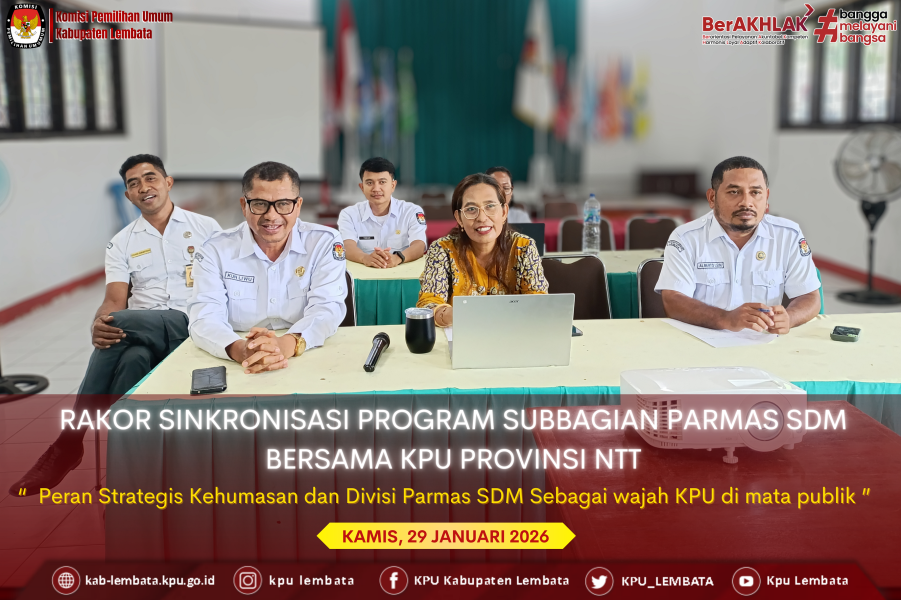 Halo, #TemanPemilih! KPU Kabupaten Lembata mengikuti kegiatan Rapat Koordinasi Sinkronisasi Program dan Kegiatan Tahun 2026 untuk Subbagian Parmas SDM yang dilaksanakan oleh KPU Provinsi Nusa Tenggara Timur secara daring dari aula KPU Kabupaten Lembata pada Kamis, 29 Januari 2026. Kegiatan ini dihadiri oleh Anggota KPU Kabupaten Lembata selaku Ketua Divisi Sosdiklih Parmas SDM Paulina Y. B. Tokan, Sekretaris KPU Kabupaten Lembata, Konradus Liwu serta staf Hukum dan SDM. Kegiatan tersebut merupakan tindak lanjut dari Surat KPU Provinsi NTT No. 59/PR.03-Und/53/3/2026 dan Surat No. 92/PR.03-Und/53/3/2026 perihal Undangan Rapat Koordinasi Sinkronisasi Program dan Kegiatan Tahun 2026. Dalam sesi pemaparan, Anggota KPU Provinsi NTT selaku Ketua Divisi Sosialisasi, Pendidikan Pemilih, Partisipasi Masyarakat, dan SDM KPU Provinsi NTT, Baharudin Hamzah, menekankan pentingnya perencanaan sejak awal tahun, meskipun tidak berada dalam tahapan penyelenggaraan pemilu. Ia menyampaikan bahwa pemilu bukan sekadar peristiwa seremonial lima tahunan, melainkan sebuah proses berkelanjutan yang membutuhkan kerja konsisten. Ia juga menyoroti peran strategis kehumasan dan Divisi Parmas SDM sebagai wajah KPU di mata publik. Menurutnya, rasionalitas publik harus dirawat melalui penyampaian informasi yang cepat, tepat, dan akurat agar kepercayaan masyarakat terhadap KPU tetap terjaga. #KPULembata #KPUMelayani #ParmasKPULembata ....