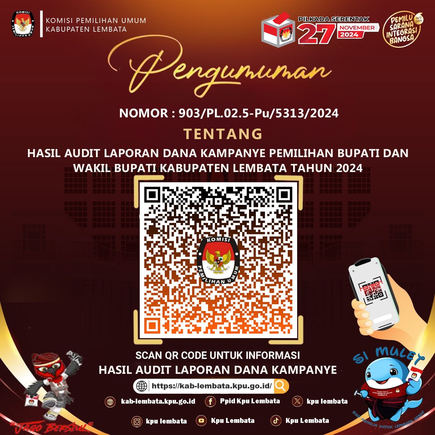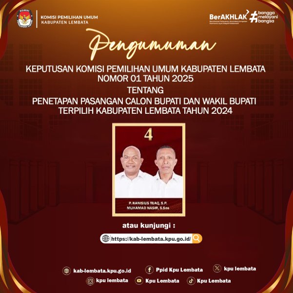 Hasil Pemilihan Bupati dan Wakil Bupati Kabupaten Lembata Tahun 2024 Selengkapnya dapat diakses DISINI