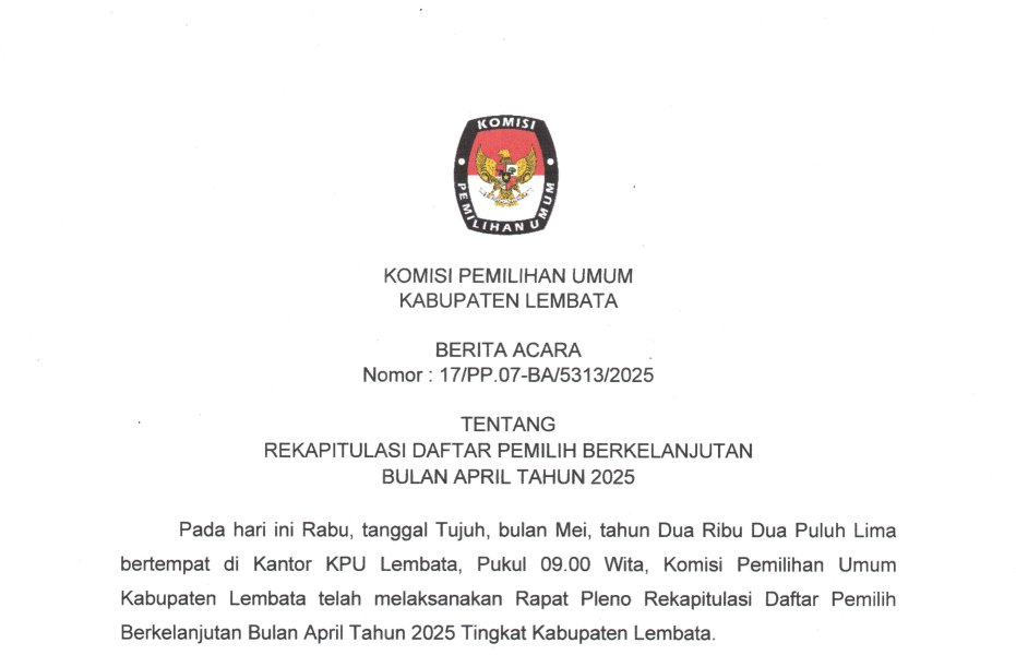 Salinan resmi keputusan ini diumumkan oleh KPU Kabupaten Lembata dan dapat diakses melalui situs resmi Website KPU Kabupaten Lembata. Keputusan tersebut mulai berlaku pada tanggal ditetapkan.