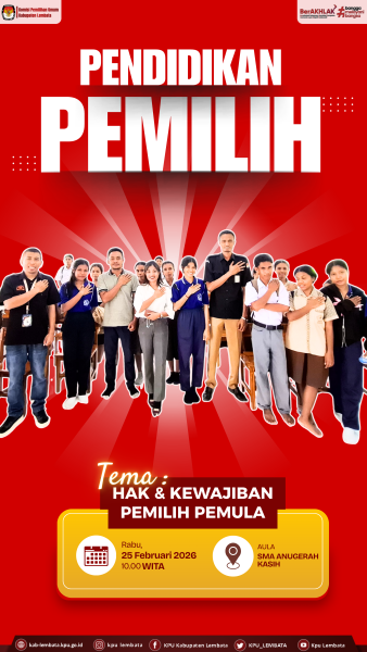 KPU Kabupaten Lembata terus gencar melakukan pendidikan pemilih bagi generasi muda. Kali ini sasarannya adalah siswa-siswi kelas XII SMA Swasta Anugerah Kasih Lewoleba dalam kegiatan sosialisasi bertajuk "Hak dan Kewajiban Pemilih Pemula" yang digelar pada Rabu, 25 Februari 2026 di aula SMA Anugerah Kasih. Hadir sebagai narasumber adalah Anggota KPU Kabupaten Lembata selaku Ketua Divisi Perencanaan, Data dan Informasi Idris Beda. Turut hadir Kasubag Rendatin KPU Kabupaten Lembata, Melkiadus Nong Akel bersama dengan staf Yohanes R. Karangora.