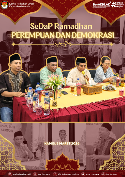 KPU Kabupaten Lembata hadir kembali menyapa warga di bulan suci Ramadhan dalam Safari Demokrasi. Kegiatan Sedap Ramadhan kali ini membawa tema “Perempuan dan Demokrasi dalam Pandangan Islam” yang dilaksanakan di ruang rapat Kantor Urusan Agama (KUA) Kecamatan Nubatukan, Lewoleba pada Kamis, 5 Maret 2026. Hadir sebagai narasumber Ketua Divisi Sosdiklih Parmas SDM KPU Kabupaten Lembata, Paulina Y. B. Tokan, Ketua Divisi Teknis Penyelenggaraan KPU Kabupaten Lembata, Ibrahim Kader, dan Ketua Divisi Perencanaan, Data dan Informasi, Idris Beda. Hadir pula Kasubag Parmas dan SDM Joenady Wongso bersama 3 (tiga) orang staf. Turut hadir Kepala KUA Kecamatan Nubatukan, Assadullah Abdullah bersama peserta kelompok perempuan Majelis Taklim dan ibu-ibu pengajian.