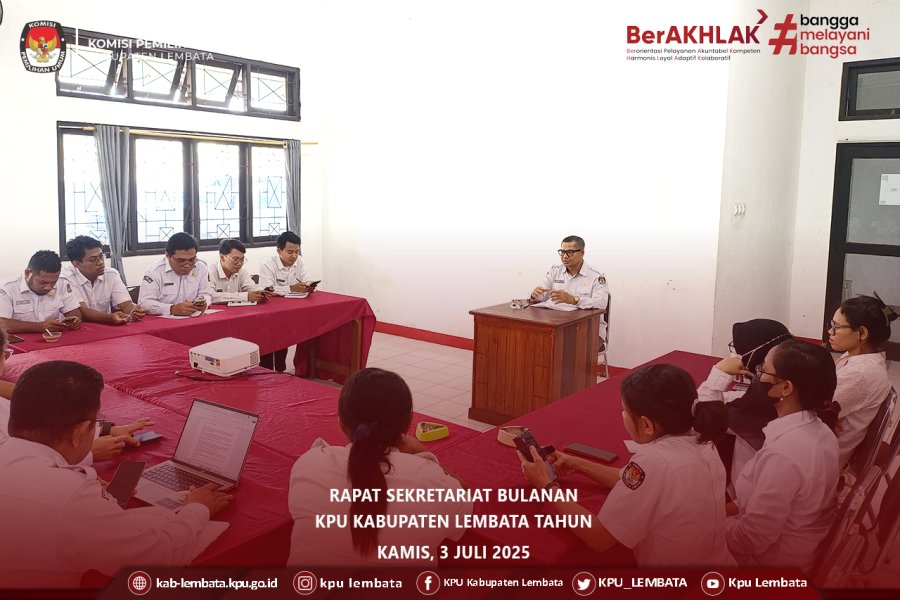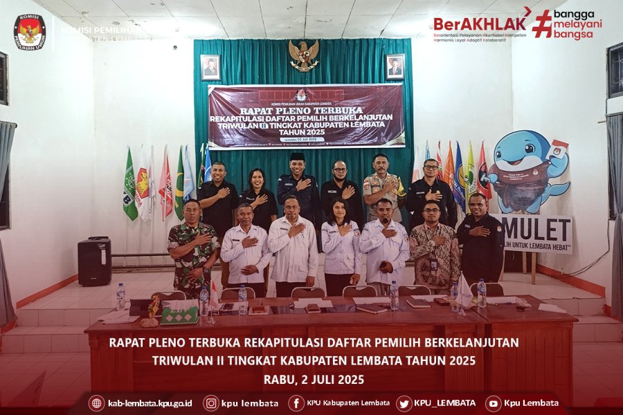 #TemanPemilih Dalam rangka menindaklanjuti koordinasi terkait Pemutakhiran Data Pemilih Berkelanjutan (PDPB), KPU Kabupaten Lembata mengadakan Rapat Pleno Terbuka Rekapitulasi Daftar Pemilih Berkelanjutan Triwulan II Tingkat Kabupaten Lembata Tahun 2025. Rapat yang dilaksanakan pada Selasa, 2 Juli 2025 ini dihadiri oleh ketua dan anggota KPU Kabupaten Lembata; Hermanus Haron Tadon, Ibrahim Kader, Idris Beda, Paulina Y. B. Tokan, dan Petrus Paulus Juang; sekretaris KPU Kabupaten Lembata, Konradus Liwu; Kasubag Perencanaan Data dan Informasi (Rendatin), serta para staf. Hadir pula tamu undangan dari instansi lain seperti Badan Pengawas Pemilihan Umum (Bawaslu) Kabupaten Lembata, Badan Pusat Statistik (BPS) Kabupaten Lembata, Dinas Kependudukan dan Catatan Sipil (Dukcapil) Kabupaten Lembata, Kepolisian Resor (Polres) Kabupaten Lembata, serta Kodim 1624/Flores Timur. Dalam rapat tersebut, Idris menerangkan mengenai dasar hukum PDPB serta menerangkan kepada tamu undangan tentang pentingnya KPU untuk melakukan koordinasi dengan para stakejolder setiap bulannya untuk mendapatkan update data terbaru. Beliau juga menerangkan bahwa perlindungan data diri yang diturunkan oleh Kementerian Dalam Negeri (Kemendagri) adalah untuk menjamin kerahasiaan data tersebut. Menanggapi hal tersebut, Perwira Penghubung Kodim 1624/Flores Timur untuk Kabupaten Lembata, Sunoko menjelaskan bahwa ada 2 (dua) orang tentara baru namun hanya 1 (satu) yang masuk domisili Kabupaten Lembata. Selain itu Kepala Bagian Operasional Polres Lembata, Markus M. Subang, juga memberikan laporan mengenai data terkini di Polres Lembata dimana tidak ada peralihan data dari pensiun di tahun ini, namun ada 4 (empat) orang di tahun depan. Selain hal tersebut, BPS memberikan pernyataan bahwa terdapat kekeliruan karena kesalahan pengisian pada sistem aplikasi, sehingga akan dilakukan coklit (pencocokan dan penelitian) bersama dengan Bawaslu, BPJS, dan BPS untuk sisa data yang belum dilakukan coklit sebelumnya. Bawaslu juga menyampaikan bahwa telah dibuka pos pengaduan masyarakat terkait PDPB untuk mengakomodir masyarakat yang ingin melaporkan hal-hal terkait pemutakhiran data pemilih. Pada akhir rapat pleno, disetujui bersama oleh KPU dan Bawaslu Kabupaten Lembata berupa Rekapitulasi PDPB Kabupaten Lembata Triwulan II Tahun 2025 dengan total pemilih laki-laki sebanyak 50.826 jiwa dan pemilih perempuan sebanyak 56.797 jiwa sehingga total keseluruhan pemilih di Kabupaten Lembata adalah 107.623 jiwa. HASIL PENETAPAN REKAPITULASI PEMUTAKHIRAN DATA PEMILIH BERKELANJUTAN KABUPATEN LEMBATA TRIWULAN II TAHUN 2025 DOWNLOAD DISINI #KPULembata #KPUMelayani