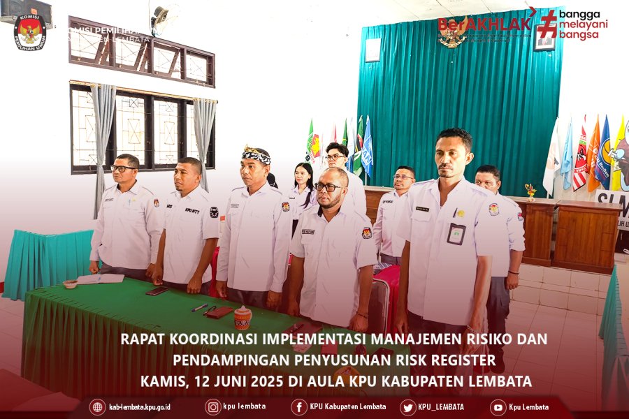 Lewoleba, Kamis, 12 Juni 2025. Komisi Pemilihan Umum Kabupaten Lembata mengikuti Rapat Koordinasi Implementasi Manajemen Risiko dan Pendampingan Penyusunan Risk Register secara daring yang diselenggarakan oleh Komisi Pemilihan Umum Republik Indonesia. Rapat Koordinasi dibuka oleh Ketua KPU Republik Indonesia Mochammad Afifuddin, dalam arahan menyampaikan bahwa sebagai instansi public, KPU wajib melakukan penilaian risiko melalui identifikasi dan analisis risiko secara tepat sasaran, serta mengajak KPU Provinsi dan KPU Kabupaten/ Kota untuk menyimak dengan baik matari yang disampaikan oleh Badan Pemeriksa Keuangan Republik Indonesia (BPK RI). Kegiatan ini menghadirkan anggota Komisi Pemilihan Umum Republik Indonesia Iffa Rosita sebagai narasumber dan selaku Ketua Divisi Hukum dan Pengawasan. Dalam paparan materinya menyampaikan bahwa tujuan penerapan manajemen risiko dalam penyelenggaraan pemilu adalah untuk memastikan kelancaran pelaksanaan pemilu dan pilkada, contohnya risiko logistic pemilu, risiko konflik sosial, risiko kepatuhan hukum. Sementara itu, narasumber dari Badan Pemeriksa Keuangan Republik Indonesia (BPK RI) menjelaskan ada beberapa prinsip manajemen risiko yaitu terintegrasi, terstruktur dan komprehensif, disesuaikan, inklusif, dinamis, informasi terbaik yang tersedia, factor manusia dan budaya serta perbaikan berkelanjutan. Sedangka proses manajemen risiko melalui beberapa tahapan yaitu penetapan konteks, penilaian risiko, identifikasi risiko, analisis risiko dan evaluasi risiko. Hadir dalam kegiatan Rakor tersebut, Ketua KPU Kabupaten Lembata Hermanus Haron Tadon, Anggota KPU Kabupaten Lembata Petrus Paulus Juang, dan Idris Beda, Sekretaris KPU Kabupaten Lembata, Kasubbag Hukum dan SDM Serta Staf Teknis Penyelenggara Pemilu & Hukum. #KPULembata #KPUMelayani
