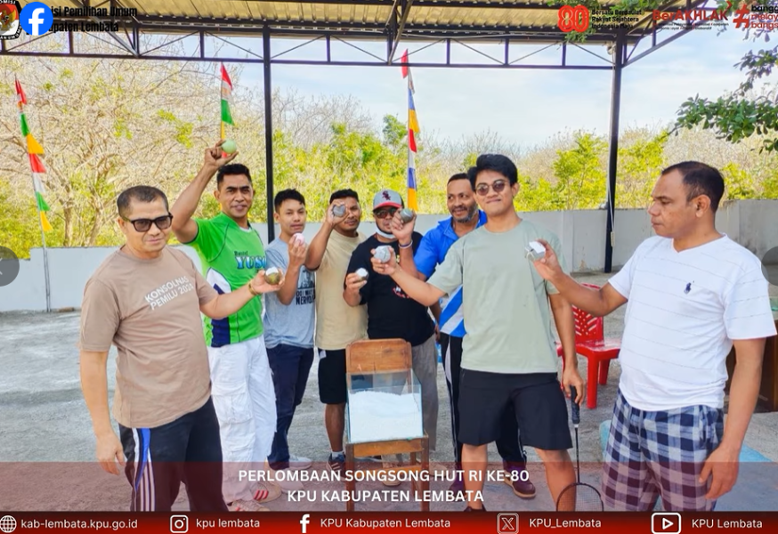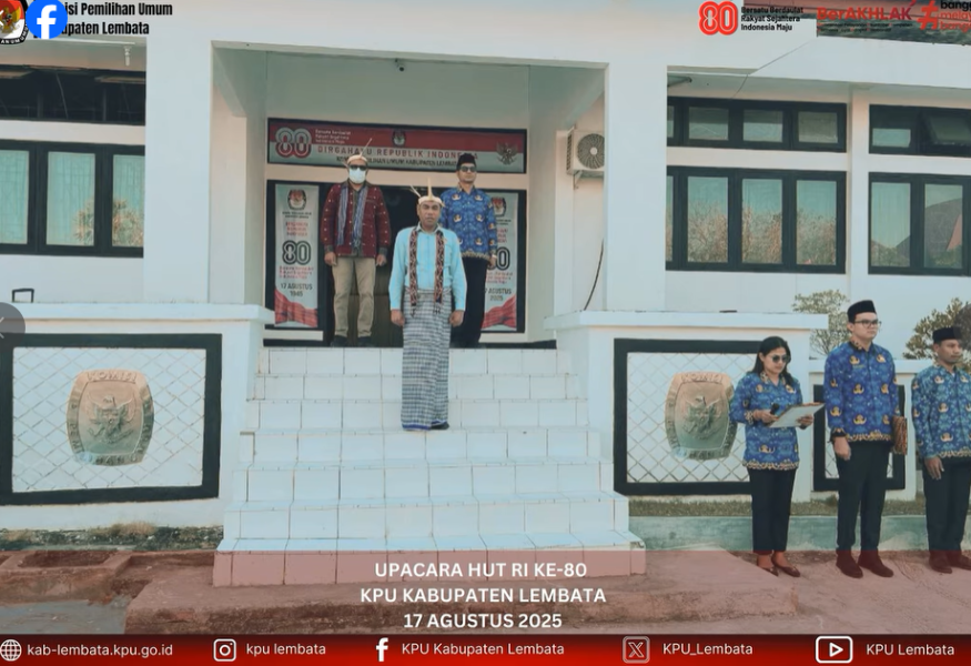 APEL KEMERDEKAAN HUT RI KE-80 KPU LEMBATA #TemanPemilih KPU Kabupaten Lembata mengadakan Apel Kemerdekaan dalam rangka memperingati HUT ke-80 Republik Indonesia yang bertempat di halaman kantor KPU Kabupaten Lembata pada Minggu, 17 Agustus 2025. Hadir dalam upacara tersebut Ketua KPU Kabupaten Lembata, Hermanus Haron Tadon yang sekaligus menjadi Inspektur Upacara, bersama dengan Anggota KPU Kabupaten Lembata, Petrus Paulus Juang. Hadir pula Sekretaris KPU Kabupaten Lembata, Konradus Liwu, para Kasubag, serta seluruh staf. Dalam amanatnya, Ketua KPU Kabupaten Lembata, Hermanus Haron Tadon, menyampaikan selamat atas kemerdekaan Indonesia yang telah berhasil diraih oleh para pejuang kita, terkhususnya adalah para pejuang demokrasi. Beliau menyampaikan harapannya agar Indonesia dapat semakin berkembang dan menjadi bangsa yang bersatu, berdaulat, sejahtera dan maju. Upacara dilaksanakan dengan penuh rasa hormat dan diikuti dengan khidmat oleh seluruh peserta. KPU Kabupaten Lembata berharap dengan usia yang baru ini, Republik Indonesia akan menjadi bangsa yang besar serta semakin menjunjung tinggi demokrasi sebagai landasan dasar membangun negeri. #KPULembata #KPUMelayani #HUTRI80 #IndonesiaMaju