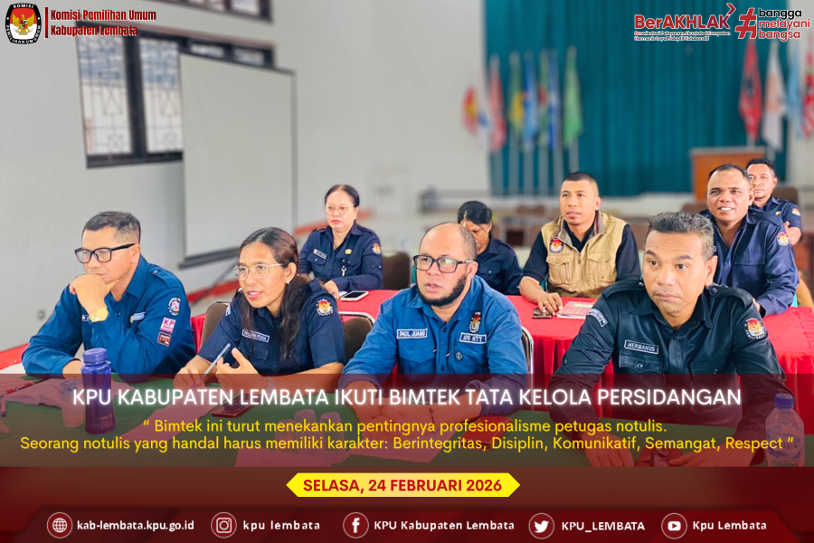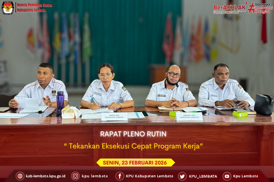 Lewoleba, 24 Februari 2026 — Komisi Pemilihan Umum Kabupaten Lembata mengikuti kegiatan Bimbingan Teknis (Bimtek) Secara Daring Tata Kelola Persidangan Pleno Tingkat Provinsi dan KPU Kabupaten/Kota se-Nusa Tenggara Timur yang diselenggarakan oleh Komisi Pemilihan Umum Republik Indonesia (KPU RI). Kegiatan yang dilaksanakan di aula KPU Kabupaten Lembata pada, Selasa, 24 Februari2026 ini bertujuan untuk memperkuat pemahaman jajaran KPU terkait tata kelola persidangan,khususnya dalam penyusunan notula dan berita acara rapat pleno sesuai ketentuan peraturan perundang-undangan. Hadir dalam Kegiatan ini, Ketua Hermanus Haron Tadon, Anggota Petrus Paulus Juang, Paulina Tokan, Idris Beda, dan Ibrahim Kader, Sekretaris Konradus Liwu, Kasubbag KUL Siti Rahayu Ibrahim Lapaleng, serta seluruh staf ASN. Materi bimtek disampaikan oleh Bari Muhammad, Kasubbag Persidangan KPU RI. Dalampemaparannya, ia menegaskan bahwa notula merupakan naskah dinas yang memuat pendapat, saran, serta kesimpulan rapat yang disampaikan pimpinan rapat. Lebih Lanjut, urai Bari, Notula memiliki peran strategis sebagai: Dokumen resmi lembaga, Sumber informasi, Alat pengingat hasil rapat, Referensi dalam pengambilan keputusan, Arsip organisasi yang memiliki nilai pertanggungjawaban. Disampaikan pula bahwa notula harus dibuat berdasarkan rekaman rapat, disusun secara sistematis sesuai kaidah tata naskah dinas, serta ditandatangani oleh pejabat atau staf yang ditugaskan. Ditegaskan lagi bahwa ada sejumlah dasar hukum yang menjadi landasan pengelolaan persidangan dan arsip, antara lain: Undang-Undang Nomor 43 Tahun 2009 tentang Kearsipan Undang-Undang Nomor 30 Tahun 2014 tentang Administrasi Pemerintahan Peraturan KPU Nomor 8 Tahun 2021 tentang Tata Naskah Dinas Peraturan KPU Nomor 17 Tahun 2023 tentang Jadwal Retensi Arsip Keputusan KPU Nomor 190 Tahun 2022 tentang Klasifikasi Keamanan dan Hak Akses Arsip Dinamis Selain itu dijelaskan Bahwa, Dokumen persidangan dikategorikan sebagai dokumen dengan klasifikasi terbatas dan memiliki ketentuan hak akses tertentu, minimal diberikan oleh pejabat eselon IV yang berwenang. Bahwa rapat pleno wajib dilaksanakan minimal satu kali dalam seminggu. Setiap rapat pleno harus memenuhi tiga unsur utama sebagai bentuk pertanggungjawaban, yaitu: Undangan rapat, Notula rapat, Berita acara rapat pleno. Adapun susunan notula meliputi kop surat, identitas rapat, daftar peserta, isi pembahasan, kesimpulan, hingga lampiran daftar hadir. Mengakhiri Materinya, Bari berpesan bahwa Bimtek ini turut menekankan pentingnya profesionalisme petugas notulis. Seorang notulis yang handal harus memiliki karakter: Berintegritas, Disiplin, Komunikatif, Semangat, Respect. Selain itu, penting pula memperhatikan hal-hal administratif seperti ketersediaan anggaran dan regulasi, faktor teknis seperti sarana prasarana serta kualitas sumber daya manusia juga menjadi penentu kelancaran penyelenggaraan persidangan.
