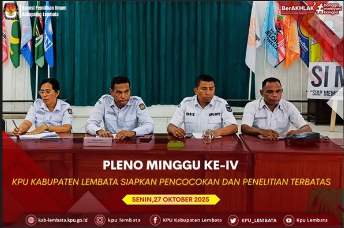 PLENO MINGGU KE-IV, KPU LEMBATA SIAPKAN COKTAS LANJUTAN #TemanPemilih KPU Kabupaten Lembata menggelar rapat pleno rutin yang membahas sejumlah agenda internal pada Senin, 27 Oktober 2025. Rapat dipimpin oleh Ketua KPU Kabupaten Lembata, Hermanus Haron Tadon, dan dihadiri oleh Komisioner KPU Kabupaten Lembata Ibrahim Kader, Idris Beda, dan Paulina Y. B. Tokan; Sekretaris KPU Kabupaten Lembata, Konradus Liwu, bersama para kepala sub bagian dan staf di aula kantor KPU Lembata. Adapun agenda utama yang dibahas dalam rapat kali ini meliputi Laporan Kesekretariatan, Lanjutan Podcast dan Pendidikan Pemilih serta Persiapan Coktas. Dalam rapat tersebut, sub bagian Rendatin menjadi fokus utama, dengan beberapa pembahasan terkait kegiatan yang akan dilaksanakan terkait Pencocokan dan Penelitian Terbatas (Coktas). Kasubag Rendtin, Melkiadus Nong Akel, menyampaikan rencana dari sub bagian Rendatin untuk melaksanakan coktas pada Rabu, 29 Oktober 2025 di seluruh kecamatan di Kabupaten Lembata. Rencananya kegiatan tersebut akan melibatkan 9 (sembilan) tim yang terbagi dalam Tim Nubatukan, Tim Lebatukan, Tim Omesuri, Tim Atadei, Tim Nagawutung, Tim Buyasuri, Tim Ile Ape, Tim Ile Ape Timur dan Tim Wulandoni. Melalui rapat pleno ini, terutama pembahasan mengenai pelaksanaan coktas, KPU Kabupaten Lembata berkomitmen untuk memastikan kelancaran dan akurasi data pemilih dalam rangka persiapan pemilu yang transparan dan terorganisir dengan baik. #KPULembata #KPUMelayani