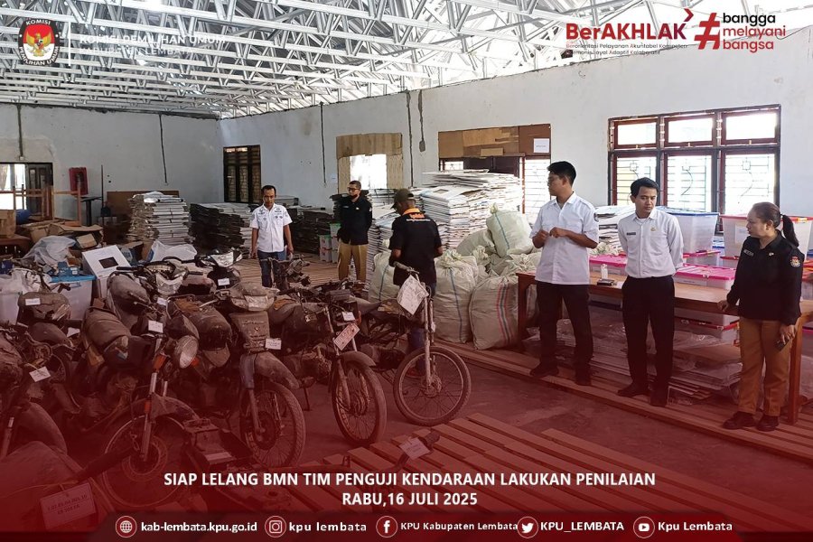 Siap Lelang BMN, Tim Penguji Kendaraan Lakukan Penilaian #TemanPemilih Menindaklanjuti pengurusan Barang Milik Negara (BMN) berupa kendaraan bermotor, KPU Lembata kedatangan Tim Penguji dari Dinas Perhubungan (Dishub) Kabupaten Lembata pada Rabu, 16 Juli 2025. Kunjungan dari Dishub ini terkait dengan pemeriksaan kondisi teknis kendaraan yang telah diajukan sebelumnya dengan rincian 3 (tiga) kendaraan roda empat dan 17 (tujuh belas) kendaraan roda dua. Tim Penguji kendaraan bermotor dilakukan oleh Harjoko Purnomo dan Lambertus Ketepe di Gudang KPU Lembata. Turut hadir mendampingi, Sekretaris KPU Lembata, Konradus Liwu, Kasubag Keuangan, Umum, dan Logistik (KUL), Siti Rahayu Ibrahim Lapaleng beserta para staf. Melalui keterangannya, Harjoko Purnomo mengatakan bahwa ”Sesuai hasil dari kunjungan KPU Lembata sebelumnya ke kantor Dishub, maka hari ini tim penguji kendaraan bermotor hadir, Hasil dari pemeriksaan ini nanti bisa diteruskan KPU ke Disperindag untuk mendapatkan kisaran penilaian harga kendaraan tersebut”. Kasubag Keuangan, Umum, dan Logistik (KUL), Siti Rahayu Ibrahim Lapaleng, disela-sela kegiatan tersebut menambahkan bahwa kedatangan Tim Penguji kendaraan bermotor dari Dishub ini merupakan rangkaian tahapan yang harus dilakukan KPU Lembata dalam proses lelang penghapusan Barang Milik Negara (BMN). Hasil pemeriksaan nanti akan diserahkan ke KPU RI yang selanjutnya akan diteruskan kepada KPKNL (Kantor Pelayanan Kekayaan Negara dan Lelang)”. Rencana lelang ini merupakan bagian dari strategi pengelolaan BMN atas aset yang telah melewati masa manfaat BMN di atas 10 tahun dan tidak optimal dalam operasionalnya karena biaya pemeliharaannya yang lebih besar dibandingkan dengan nilai ekonomisnya. Dengan Lelang ini, diharapkan agar kendaraan tersebut sudah tidak muncul lagi sebagai inventaris KPU Lembata karena kondisinya sudah rusak berat. #KPULembata #KPUMelayani