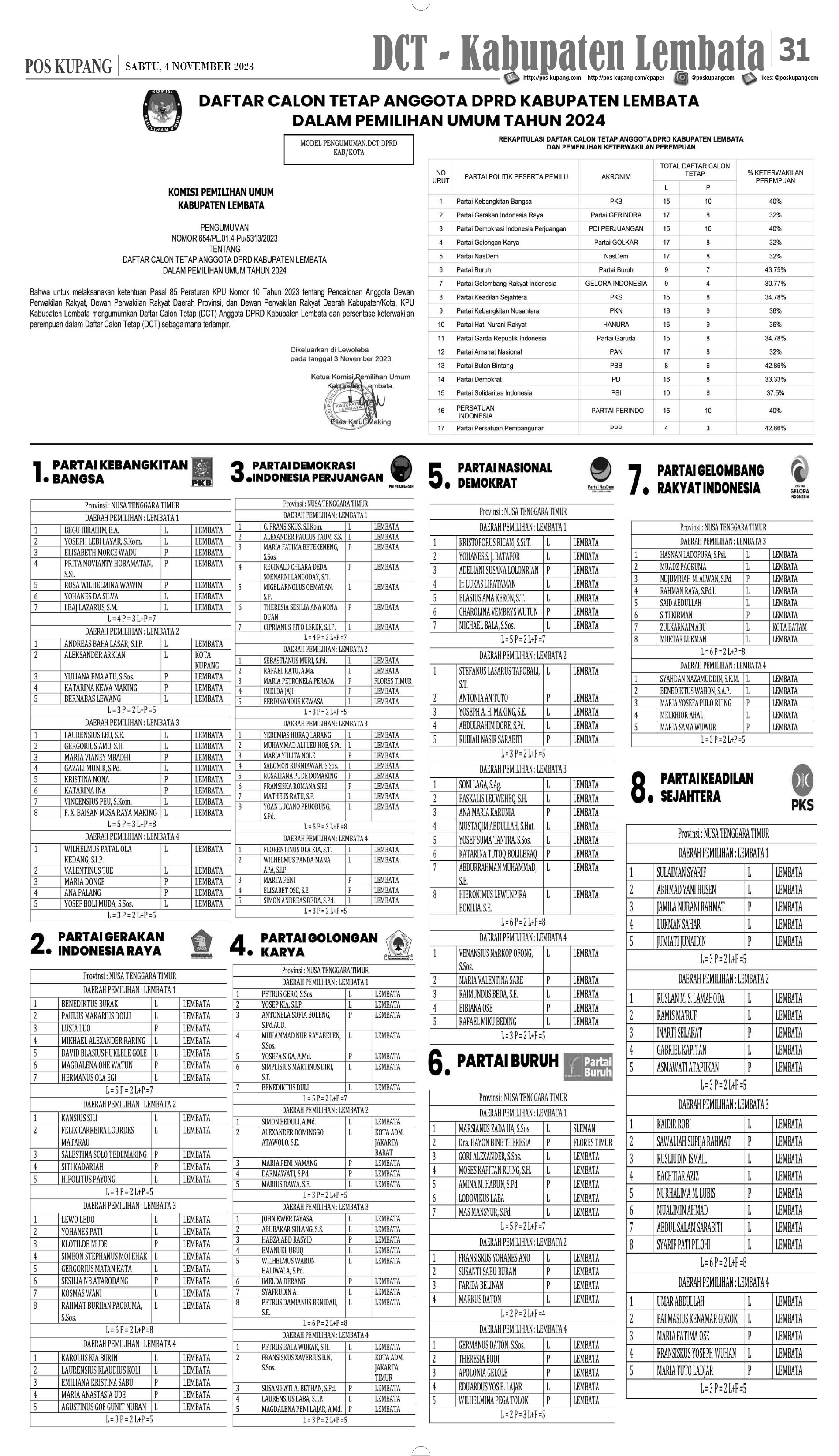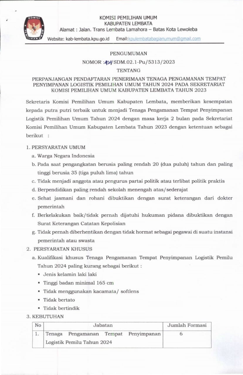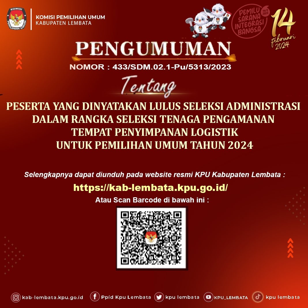 Berdasarkan hasil seleksi bank penampung dana hibah Pemilihan Bupati dan Wakil Bupati Lembata Tahun 2024, yang dilaksanakan pada hari Rabu, Tanggal 22 November 2023 di Aula Kantor Komisi Pemilihan Umum Kabupaten Lembata, dan berdasarkan Berita Acara Nomor : 292/KU.07-BA/5313/2023, tentang Penetapan Pemenang Beauty Contest Bank Penyimpan Dana Hibah Daerah untuk Pemilihan Bupati dan Wakil Bupati Lembata SELENGKAPNYA DISINI